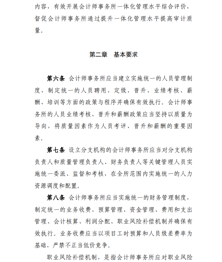 為貫徹落實《國務(wù)院辦公廳關(guān)于進一步規(guī)范財務(wù)審計秩序促進注冊會計師行業(yè)健康發(fā)展的意見》(國辦發(fā)〔2021〕30號)有關(guān)要求,加強會計師事務(wù)所內(nèi)部治理,提高質(zhì)量管理水平,根據(jù)《中華人民共和國注冊會計師法》、《會計師事務(wù)所執(zhí)業(yè)許可和監(jiān)督管理辦法》(財政部令第97號文件修改發(fā)布),我們制定了《會計師事務(wù)所一體化管理辦法》,現(xiàn)予印發(fā),自2022年10月1日起執(zhí)行。