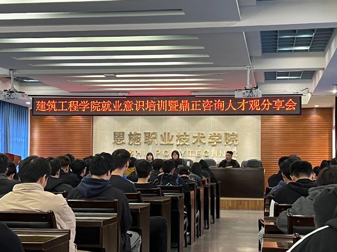 4月6日,鼎正恩施分公司總經(jīng)理彭萍受邀前往恩施職業(yè)技術(shù)學(xué)院建筑工程學(xué)院,為應(yīng)屆畢業(yè)生帶來了《關(guān)于就業(yè)意識培訓(xùn)暨鼎正咨詢?nèi)瞬庞^》分享會。