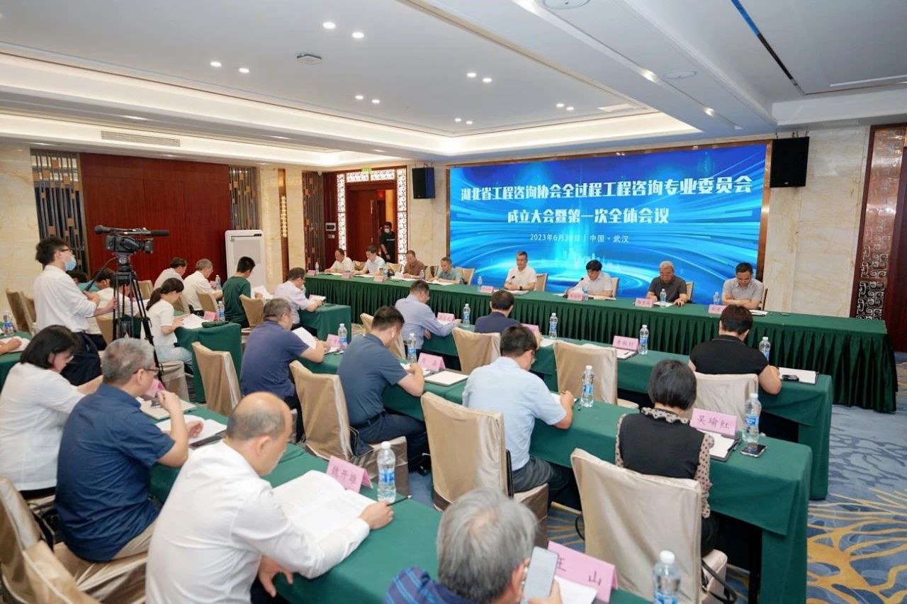 2023年6月30日上午,湖北省工程咨詢協會全過程工程咨詢專業委員會成立大會暨第一次全體會議在武漢召開。協會會長、副會長、副會長單位代表及全過程工程咨詢專委會全體委員等共60多人出席會議。