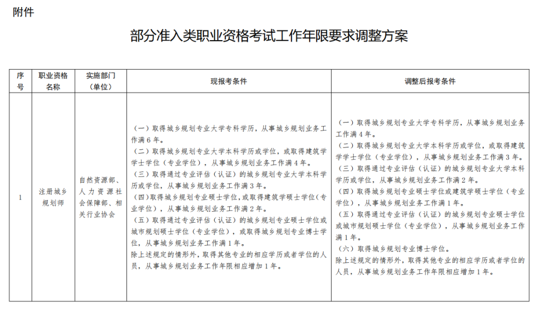 附件:部分準入類職業資格考試工作年限要求調整方案