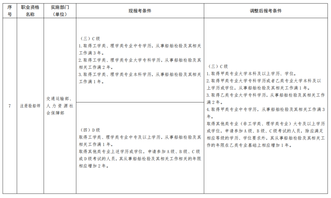 一、《部分準入類職業資格考試工作年限要求調整方案》(見附件)自2022年起實施。除調整考試工作年限要求外,13項準入類職業資格的其他考試報名條件不變。