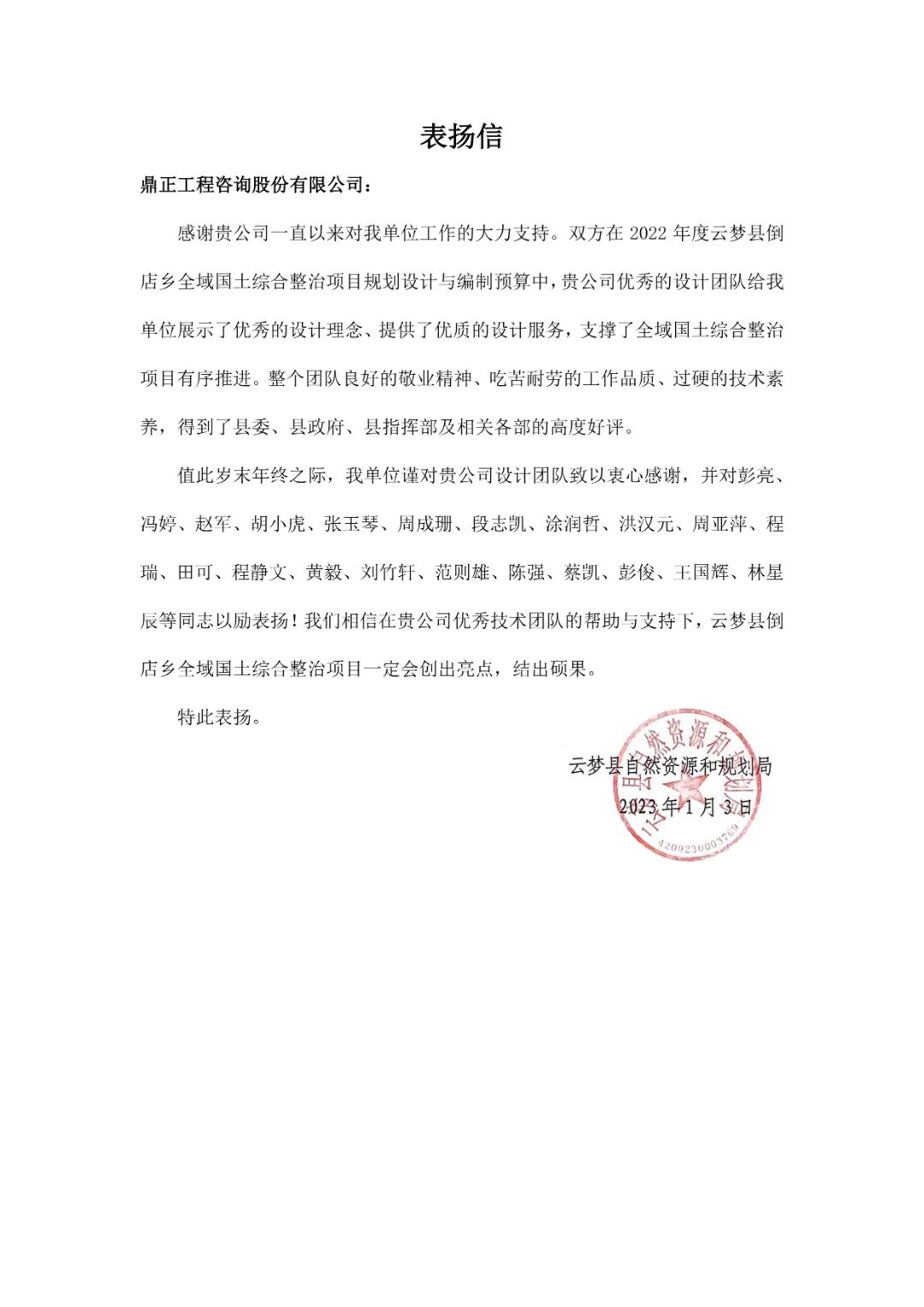 在2022年度云夢(mèng)縣倒店鄉(xiāng)全域國(guó)土綜合整治項(xiàng)目規(guī)劃設(shè)計(jì)與編制預(yù)算過(guò)程中,項(xiàng)目團(tuán)隊(duì)向業(yè)主展示了優(yōu)秀的設(shè)計(jì)理念,提供了優(yōu)質(zhì)的設(shè)計(jì)服務(wù),有條不紊地推進(jìn)項(xiàng)目進(jìn)行,高質(zhì)量地完成了項(xiàng)目相關(guān)報(bào)規(guī)報(bào)批節(jié)點(diǎn),獲得縣委、縣政府、縣指揮部及相關(guān)各部高度好評(píng)。本項(xiàng)目規(guī)格高、要求嚴(yán)格,在接到任務(wù)后,立即成立了項(xiàng)目組,多次深入現(xiàn)場(chǎng)調(diào)研,全力推動(dòng)項(xiàng)目設(shè)計(jì)咨詢(xún)工作的開(kāi)展,從項(xiàng)目建設(shè)必要性、建設(shè)規(guī)模、策劃及建設(shè)方案、工程實(shí)施計(jì)劃、投資估算及資金籌集、綜合效益等方面進(jìn)行了詳盡地分析研究,為項(xiàng)目前期工作的開(kāi)展發(fā)揮了咨詢(xún)智囊作用。在業(yè)主的大力支持下,項(xiàng)目組從立項(xiàng)到實(shí)施,克服了諸多困難,展現(xiàn)了優(yōu)秀的設(shè)計(jì)咨詢(xún)能力和資源整合能力,其敬業(yè)態(tài)度和專(zhuān)業(yè)素養(yǎng)給業(yè)主留下深刻印象,并獲得業(yè)主單位給予一致好評(píng)。