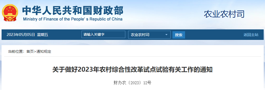 為深入貫徹黨的二十大精神,認真落實2023年中央一號文件“深化農村改革”、“深入推進農村綜合改革試點示范”的任務要求和中共中央、國務院印發的《數字中國建設整體布局規劃》部署,在總結前期試點經驗的基礎上,2023年中央財政繼續支持實施并啟動新的農村綜合性改革試點試驗(以下簡稱試點)。現就有關工作通知如下。
