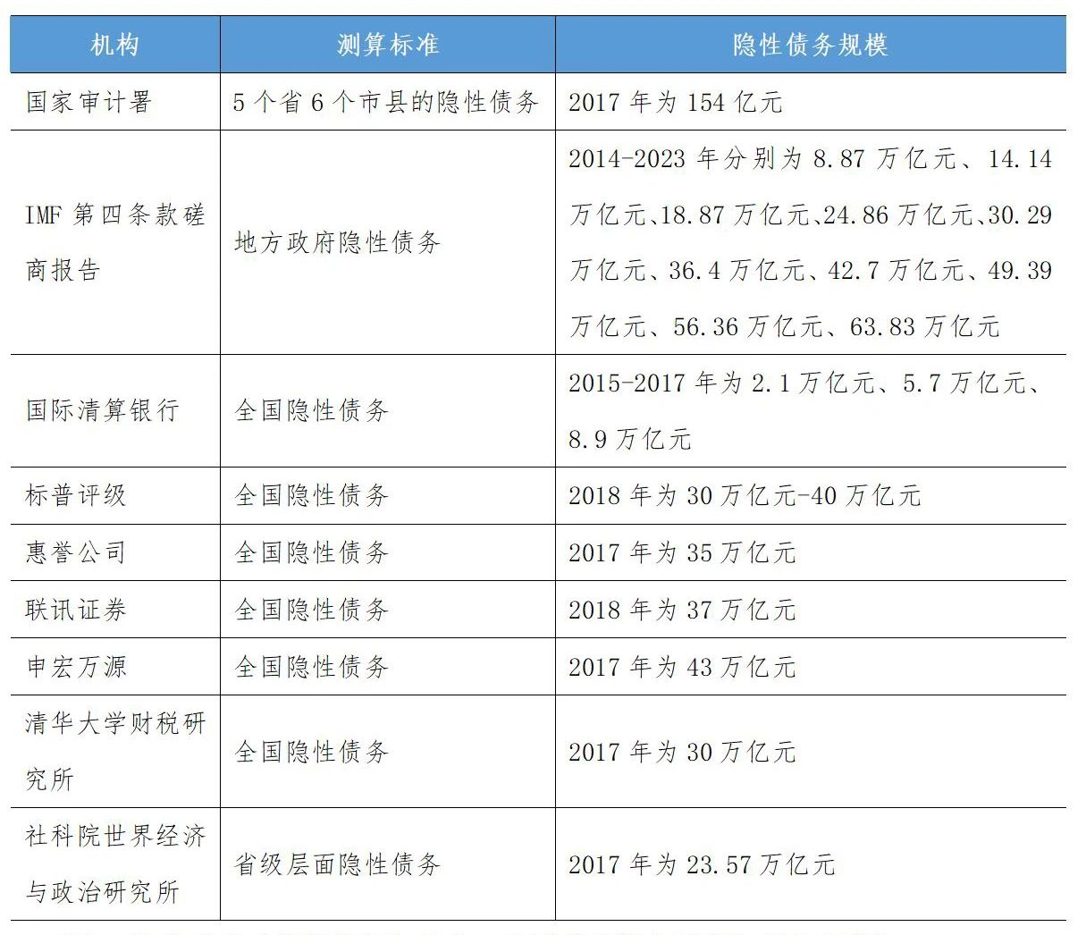 表1-1 關(guān)于隱性債務(wù)規(guī)模的測算