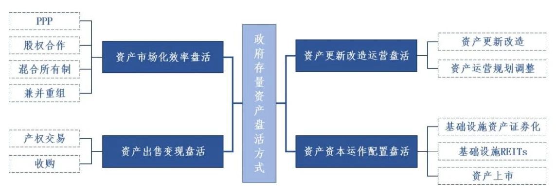 ? 資產(chǎn)市場化效率盤活,是指通過PPP模式、混合所有制改革、股權(quán)合作等市場化方式,引入并借助第三方的專業(yè)化技術(shù)、管理經(jīng)驗等,提高資產(chǎn)運營效率與質(zhì)量,進(jìn)而盤活存量資產(chǎn)。