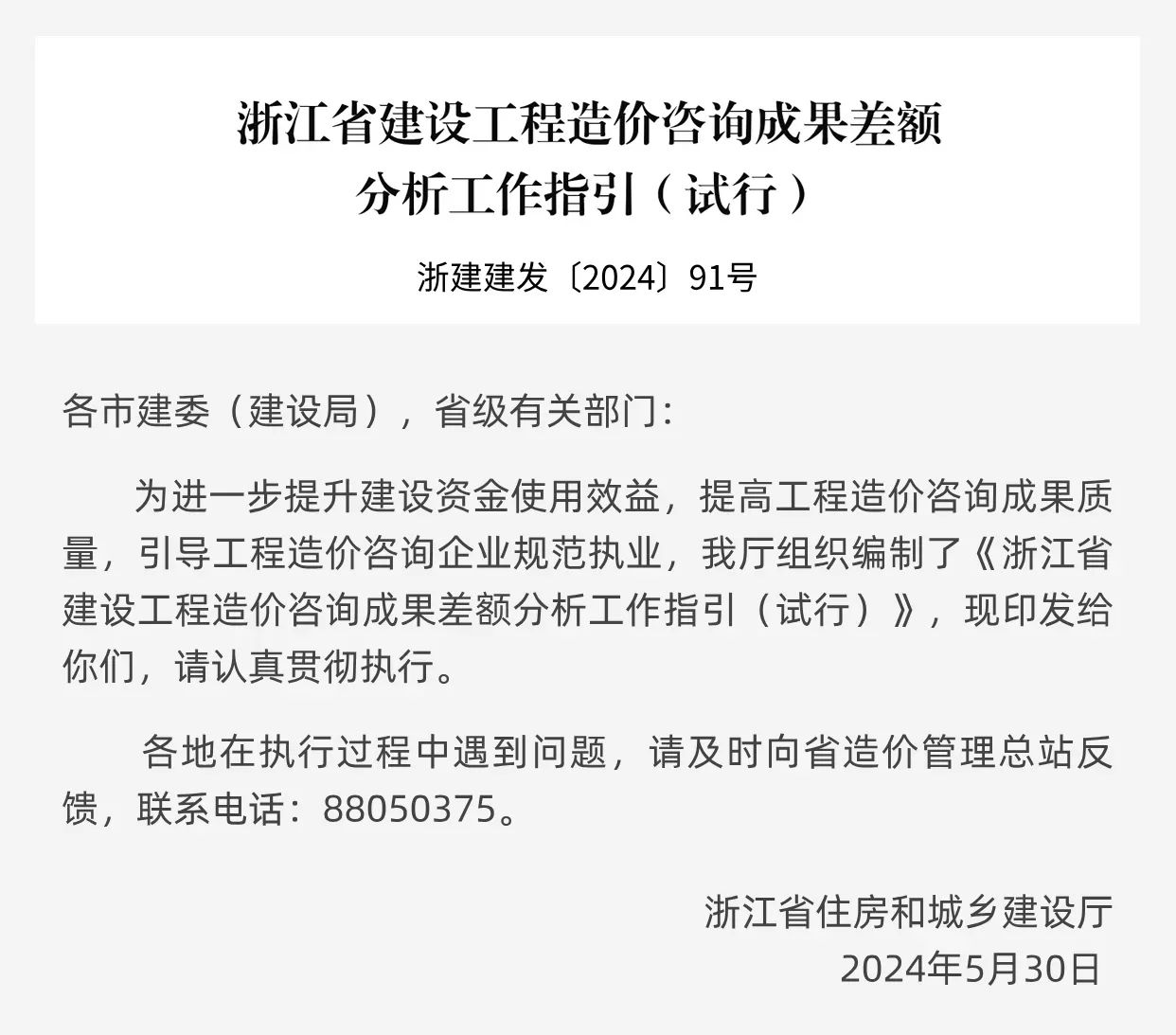 浙江省建設廳關于印發(fā)《浙江省建設工程造價咨詢成果差額分析工作指引(試行)》的通知