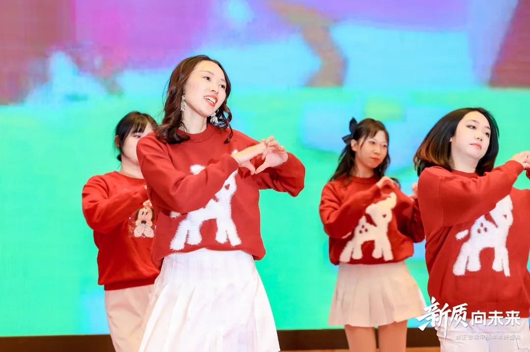 另一邊,由信息部、投標部、城市公司發(fā)展部、市場部、財務(wù)部及造價咨詢事業(yè)部臨時組建的女團,帶來了洋溢著青春活力的舞蹈串燒《愛你》+《桃花朵朵開》,展現(xiàn)了別樣的風(fēng)采。