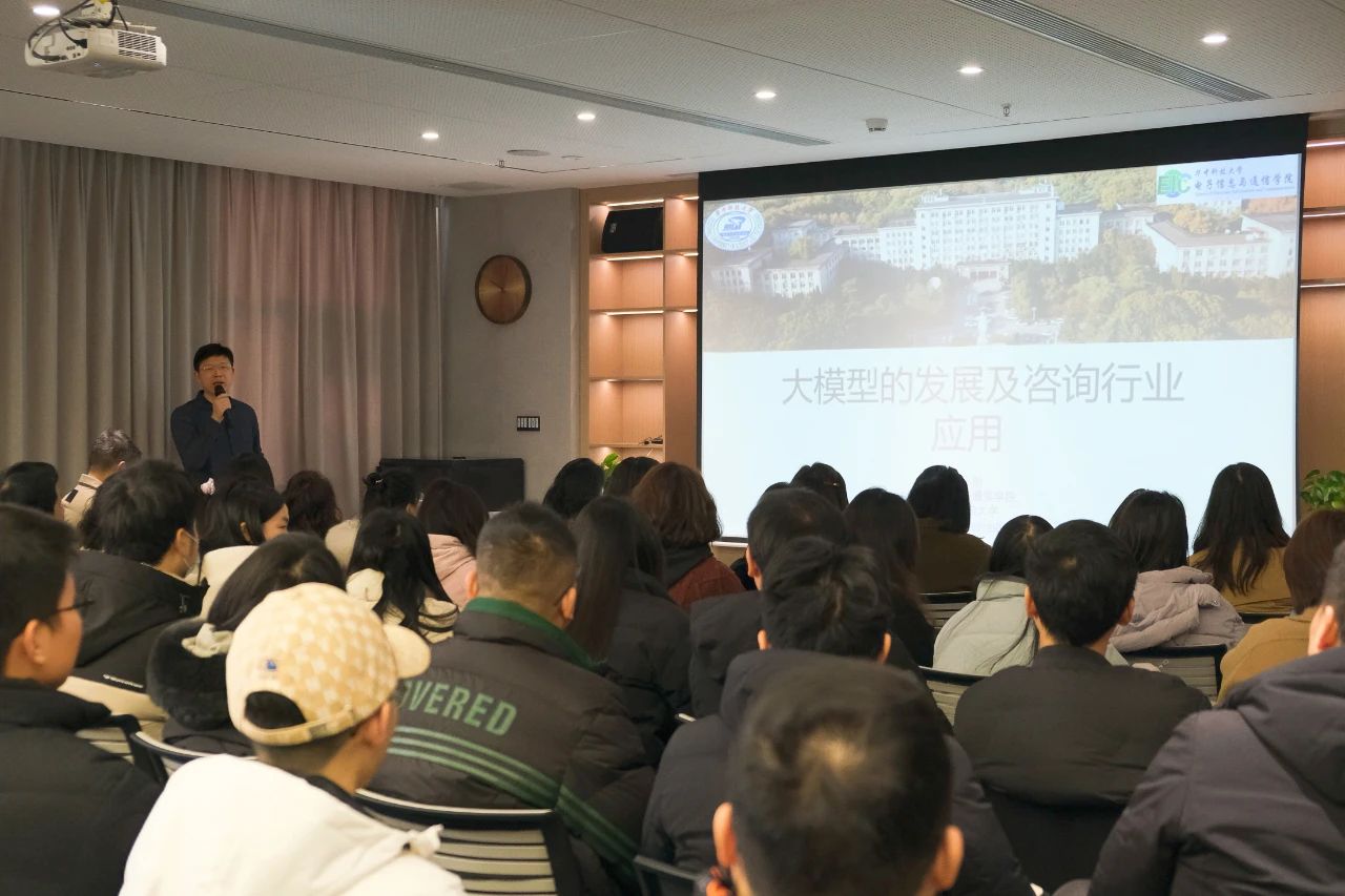 本次培訓有幸邀請到華中科技大學電子信息與通信學院張小剛老師授課。張老師從大模型發(fā)展現(xiàn)狀、大模型應用關鍵技術及大模型在咨詢行業(yè)咨詢應用等方面展開分享,并為大家?guī)砹艘粓龈韶洕M滿的培訓。
