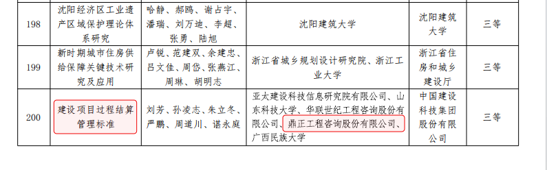 鼎正參與編制的《建設項目過程結算管理標準》(T/CECS 1178-2022)通過專業組和評審委員會的兩級評審,從700余個報送項目中脫穎而出,榮獲2024年度華夏建設科學技術獎三等獎。