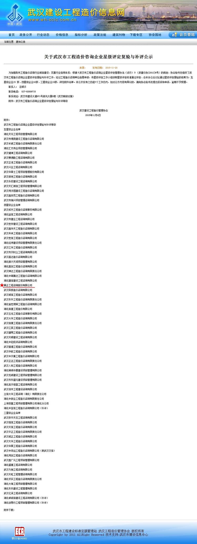 我司獲武漢市工程造價咨詢企業(yè)星級評定四星級企業(yè)稱號