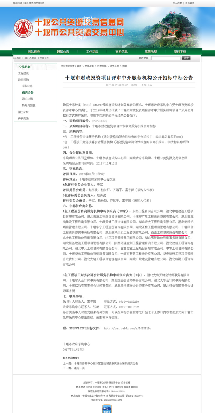 【經(jīng)營成果】我司入十堰市財政投資項目評審中介服務機構庫