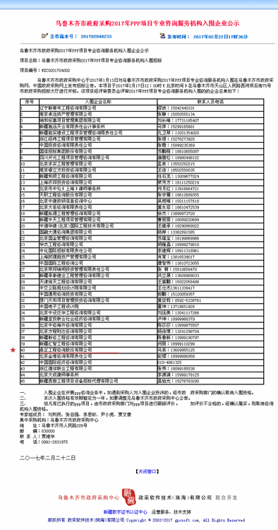 【經(jīng)營(yíng)成果】我司成功入圍烏魯木齊市政府采購(gòu)2017年P(guān)PP項(xiàng)目專業(yè)咨詢服務(wù)機(jī)構(gòu)庫(kù)