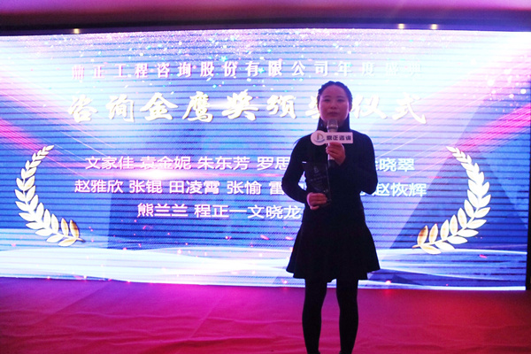 ▲技術總監朱立冬、副總姚建功頒發咨詢金鷹獎,徐曉翠代表發言