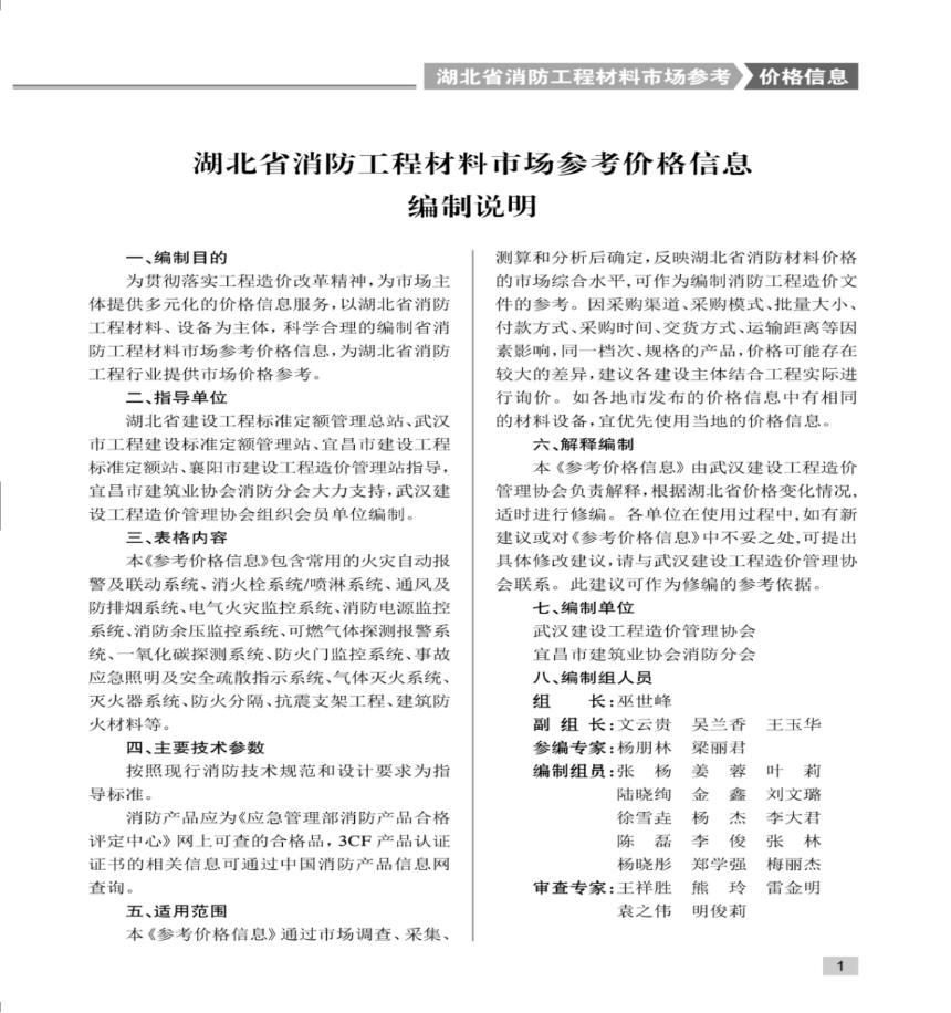 武漢建設工程造價管理協會、宜昌市建筑業協會消防分會聯合組建了編委會,通過市場調查、數據分析、整理歸類、專家審查等環節,保證了價格信息的科學性、合理性、準確性、完整性。